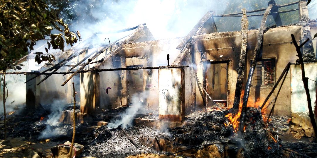 Six thatched roof houses covered with tarpaulin sheets were burnt affecting 48 people including children in Garudubilli village on the 26 September 2018. The accident happened around 11.00 am when all the men were away at work and the women had gone to collect firewood. Some children were at school and the very young were with their mothers. Thankfully, there were no deaths or even injuries. However, everything was reduced to ashes in just 30 minutes. This community has been working in the stone quarry for many years. They migrated from Odisha state many years ago.